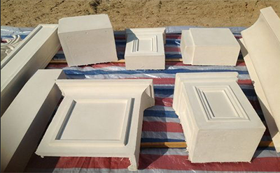 EPS造型成型后,用建筑膠粘劑粘接玻纖網(wǎng)格布(或直接用自粘網(wǎng)格布),做EPS造型表面增強(qiáng)防護(hù)面層可提高表面抗撞擊能力,并與任意一種涂料所相溶,適用于外墻外保溫系統(tǒng)工程同步進(jìn)行施工。