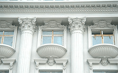 GRC和EPS構(gòu)件的廣泛適用于別墅、歐式風(fēng)格小區(qū)、酒店及商業(yè)街等建筑的門窗套、檐角線、腰線及庭柱等部位。
