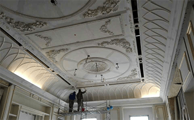 一般通過水磨、酸洗、噴砂、鑿石、著色、噴涂等方式,使得GRC構件表面的骨料暴露出來或者獲得其他的效果,使GRC構件具有特殊的表面裝飾效果。